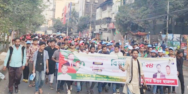 ভয়েস ডেস্কঃ একাত্তরের ডিসেম্বরে স্বাধীন জাতি হিসেবে বিশ্বে আত্মপরিচয় লাভ করে বাঙালি। বিজয়ের মাস ডিসেম্বরের ৬ তারিখ উত্তরায় ঢাকা মহানগর উত্তর বিএনপির আহ্বায়ক আমিনুল হক ও সদস্য সচিব মোস্তফা জামান এর পক্ষ থেকে বিজয় র্যালি বের করে ঢাকা মহানগর উত্তর ছাত্রদলের সাবেক কার্যকরী সদস্য ও সাধারন সম্পাদক পদ প্রত্যাশি সাইফুল ইসলাম কাজলের নেতৃত্বে ছাত্রদল। এতে সাধারণ শিক্ষার্থী থেকে শুরু করে মহানগর উত্তর ছাত্রদলের সকল থানার নেতাকর্মী ও সাধারন মানুষ অংশ নেন। সাইফুল ইসলাম কাজল বলেন, ২৪ এর গণ-অভ্যুত্থানের পর খুনি হাসিনা ও ভারতের আধিপত্য মুক্ত বাংলাদেশে নতুন উদ্দীপনায় এবারের ১৬ ডিসেম্বর উদ্যাপন করবে দেশের মানুষ।