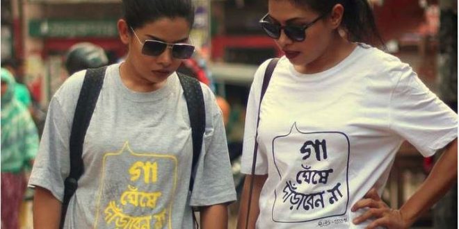 ‘গা ঘেঁষে দাঁড়াবেন না’ লেখা টি-শার্টের ছবি ভাইরাল হওয়ার পর এনিয়ে বিভিন্ন রকম আলোচনা-সমালোচনা তৈরি হয়েছে। এই