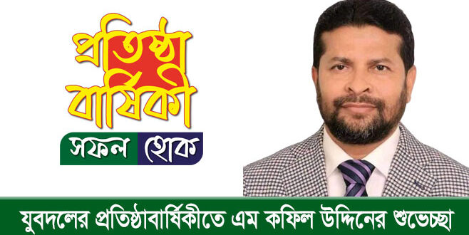 শুভেচ্ছা বার্তায় এম কফিল উদ্দিন আহমেদ বলেন, শহীদ রাষ্ট্রপতি জিয়াউর রহমান জাতীয়তাবাদী যুবদল প্রতিষ্ঠা করেছিলেন বাংলাদেশের রাজনৈতিক কর্মকান্ডে নেতৃত্ব বিকশিত করার লক্ষ্যে। প্রতিষ্ঠালগ্ন থেকে আজ পর্যন্ত বাংলাদেশের রাজনৈতিক প্রতিকূলতা, জনগণের অধিকার প্রতিষ্ঠা ও দেশের স্বার্বভৌমত্ব, গণতন্ত্র রক্ষার আন্দোলন সংগ্রামে রাজনৈতিক নেতৃত্বে জাতীয়তাবাদী যুবদলের নেতাকর্মীদের ভূমিকা ছিলো প্রশংসনীয় অবদান ।